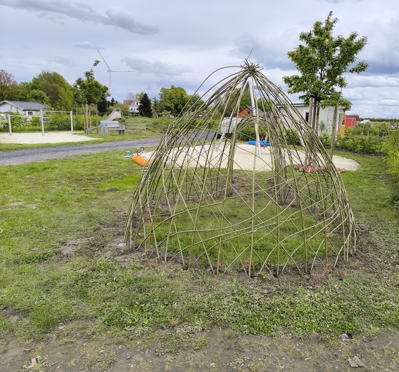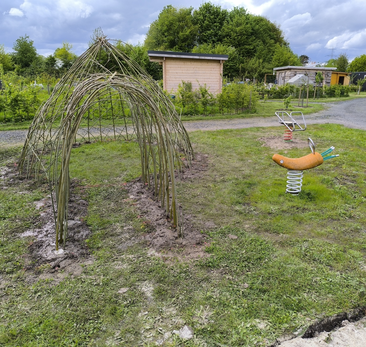 Das Highlight des Projekts ist zweifellos das neue Weidentipi, das nun stolz auf dem Spielplatz steht. Hergestellt aus Weidenzweigen, bietet das Tipi den Kindern nun einen neuen Ort zum Spielen und Entdecken. Ergänzend zum Tipi wurde ein weiteres Wipptier hinzugefügt, das die Spielmöglichkeiten für die jüngsten Mitglieder des Vereins erweitert.